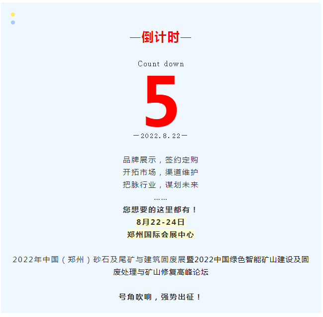 除了高端論壇、項目推介、實地考察等板塊外,還將增加新品發(fā)布、現(xiàn)場簽約、嘉賓對話、展商訪談、國內(nèi)優(yōu)秀綠色礦山成果展示、國內(nèi)專業(yè)媒體專版推介等板塊,全方位、多層次豐富展會內(nèi)容,凸顯展會效果。
