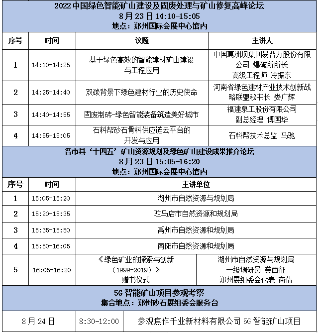 本屆展會期間,除了有豐富的主題演講活動,為了展現(xiàn)各地綠色智能化礦山建設(shè)和生態(tài)修復(fù)成果,同期將舉行“各市縣‘十四五’礦山資源規(guī)劃及綠色礦山建設(shè)成果推介論壇”、焦作千業(yè)新材料有限公司5G智能礦山項目參觀考察活動。