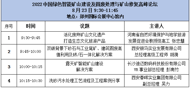 2022中國綠色智能礦山建設(shè)及固廢處理與礦山修復(fù)高峰論壇將邀請砂石(建材)行業(yè)主流企業(yè)、水泥企業(yè)大集團(tuán)、生態(tài)修復(fù)示范企業(yè)、最新技術(shù)裝備代表、資深投行等一起深入探討分析最新砂石礦山行業(yè)政策、礦山生態(tài)修復(fù)生產(chǎn)工藝和運行,深入剖析砂石礦凈礦出讓、砂石黏土生態(tài)修復(fù)剩余砂石料處置、綠色礦業(yè)示范區(qū)建設(shè)、智慧礦山打造等焦點、熱點問題,探尋砂石行業(yè)綠色可持續(xù)高質(zhì)量發(fā)展新路徑。