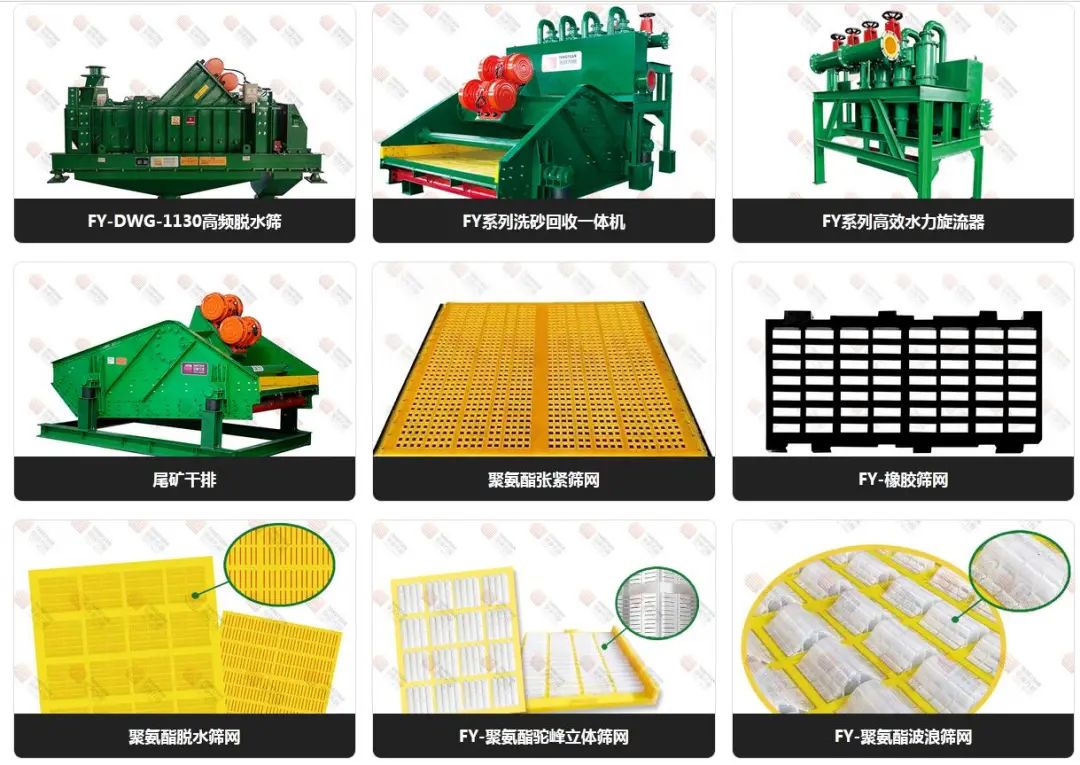 高頻篩、高頻篩、直線篩、分級(jí)旋流器、聚氨酯精細(xì)篩網(wǎng)、聚氨酯和橡膠篩板、金屬篩網(wǎng)與篩板及各種篩分設(shè)備配件。