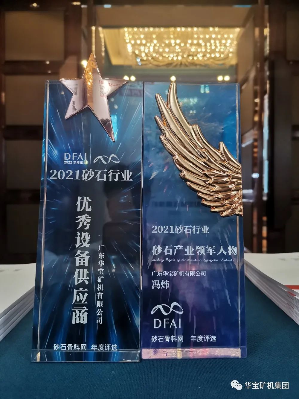 在“全國砂石產(chǎn)能TOP20獨(dú)家發(fā)布儀式-砂石骨料年會(huì)”頒獎(jiǎng)活動(dòng)中,華寶礦機(jī)集團(tuán)董事長馮煒先生榮獲2021砂石行業(yè)“砂石產(chǎn)業(yè)領(lǐng)軍人物”的殊榮;華寶礦機(jī)集團(tuán)榮獲2021砂石行業(yè)“優(yōu)秀設(shè)備供應(yīng)商”的榮譽(yù)稱號(hào)。