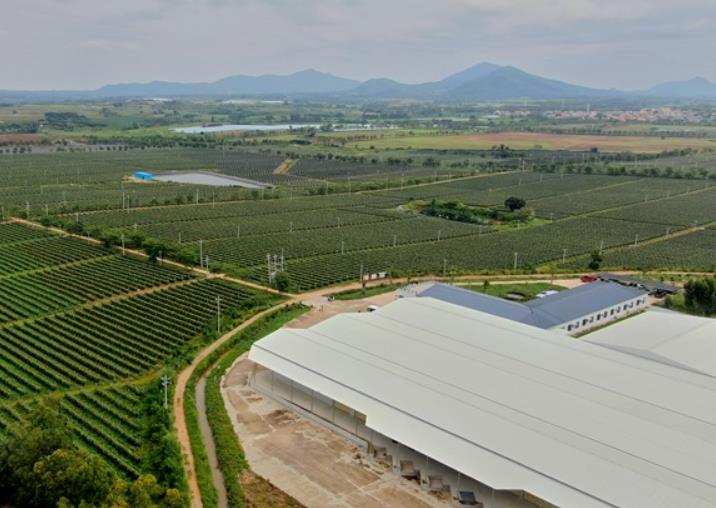 目前,尚嶺農(nóng)業(yè)自建的生物工廠所有的有機肥料來自于禽畜糞污及秸稈等生物廢棄物,通過添加混合菌種,可以在48小時內(nèi)發(fā)酵成全有機、全水溶、無臭味、不會造成二次污染的有機肥,通過水肥一體化系統(tǒng)直接進行滴灌,每年可吸納3.5萬噸豬糞,用于生物有機肥的制作,并直接用于火龍果等農(nóng)產(chǎn)品種植。