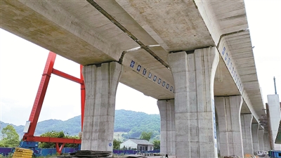 建設(shè)者用預(yù)制梁“拼”起象山灣疏港高速
