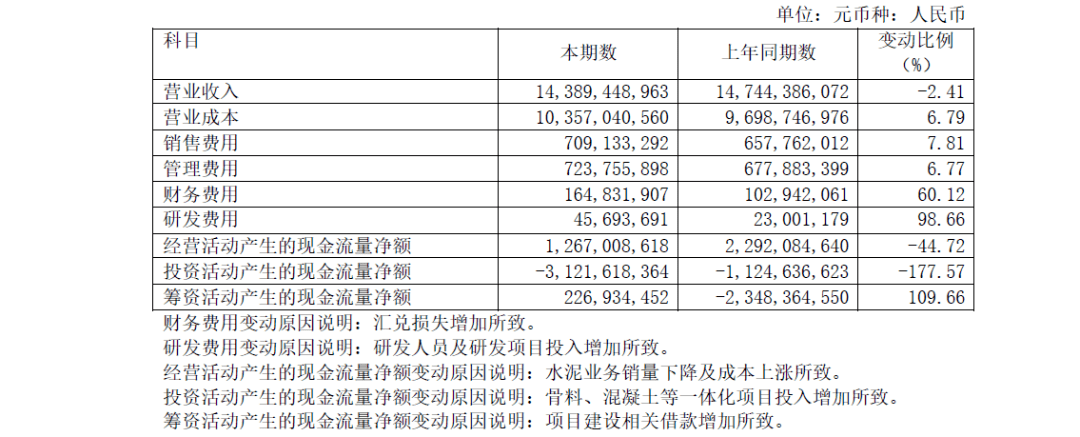 華新水泥(SH 600801)10月26日晚間發(fā)布三季度業(yè)績公告稱,2022年前三季度營收約218.11億元。根據(jù)第三季度報告顯示:在“在建工程”、“其他非流動資產(chǎn)”、“投資活動產(chǎn)生的現(xiàn)金流量凈額”等方面,因骨料、混凝土工程項目投入增加原因,都產(chǎn)生較大波動。