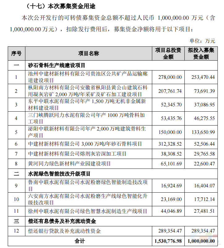 項目、水泥綠色智能技改升級項目、償還有息債務及補充流動資金。