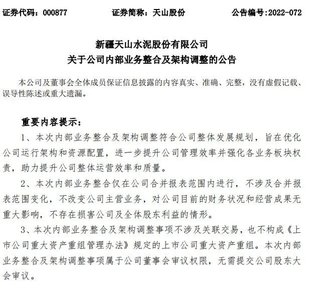公司將新天山下屬各級子公司按照區(qū)域劃分以股權(quán)轉(zhuǎn)讓/收購、劃轉(zhuǎn)、增資/減資、新設等方式,整合至該等區(qū)域公司。具體劃分如下: