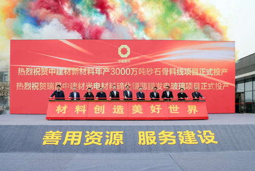12月7日,中建材新材料年產3000萬噸砂石骨料線、瑞昌中建材光電材料碲化鎘薄膜發電玻璃生產線正式竣工投產,中國建材集團黨委書記、董事長周育先,九江市委書記劉文華,中國建材集團黨委常委、副總經理魏如山,中國建材集團總工程師、中國工程院院士、凱盛科技董事長彭壽出席竣工投產儀式。