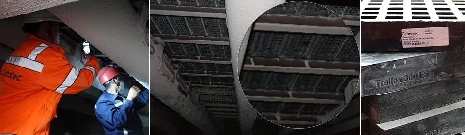 2022年11月26日,在應(yīng)用5個(gè)月后停機(jī)檢查Trellex橡膠篩板,下層篩面無堵孔、無粘料提升篩分效率,釋放產(chǎn)能潛力