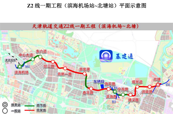 工程概況:項(xiàng)目起自金鐘河大街站,終至北塘站,連接濱海國(guó)際機(jī)場(chǎng)、濱海西站兩大交通樞紐,途經(jīng)東麗區(qū)、濱海新區(qū)等。正線全長(zhǎng)約52.42km,其中地下線約20.86km,高架線約28.88km,過(guò)渡段約2.68km。17座車站中包括地下站6座、高架站10座、地下一層地面一層站1座。設(shè)車輛段一處、停車場(chǎng)一處,新建主變電所兩座。控制中心接入濱海新區(qū)線網(wǎng)控制中心。項(xiàng)目已于2021年12月開(kāi)工。