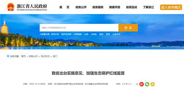 《意見》自公布之日(即2022年12月14日)起試行,浙江省自然資源廳將與相關(guān)部門合力做好生態(tài)保護紅線監(jiān)管工作,切實加強全省生態(tài)環(huán)境綜合治理、系統(tǒng)治理、源頭治理,一體化推進生態(tài)系統(tǒng)保護和修復(fù),共同維護我省生態(tài)安全格局,實現(xiàn)環(huán)境資源永續(xù)利用,推動經(jīng)濟社會綠色可持續(xù)發(fā)展。