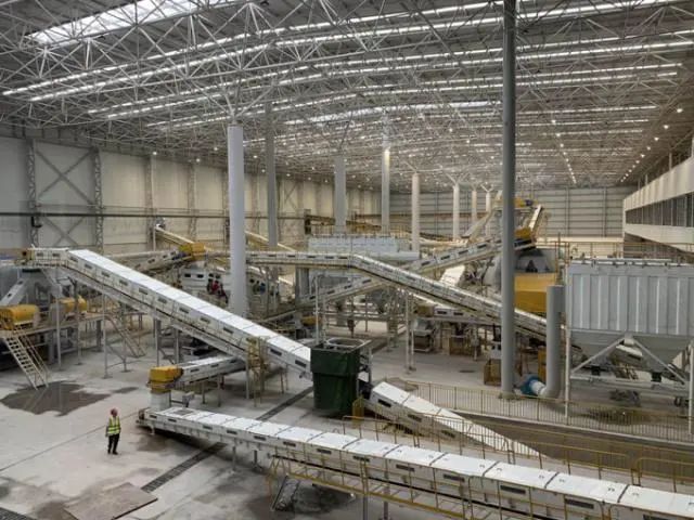 建筑垃圾處理利用中心已進(jìn)入帶料調(diào)試運(yùn)營期,由堆料區(qū)、處置區(qū)和出料區(qū)組成。在處置區(qū)主廠房,處理生產(chǎn)線一環(huán)扣著一環(huán),占據(jù)著整個廠房的空間。人工分揀車間有兩條傳送帶,8個工人在傳送帶兩側(cè),手動撿出建筑垃圾里的塑料、織物等雜質(zhì)。這條處理線上包括除鐵、除土、除輕物質(zhì)、除塵和除木材等環(huán)節(jié),分別用于剔出建筑垃圾和裝修垃圾里的金屬、土、塑料和木材等“雜質(zhì)”,剩余的磚頭瓦塊經(jīng)過多輪粉碎,變成再生骨料,制作成磚塊等,服務(wù)于城市建設(shè)。