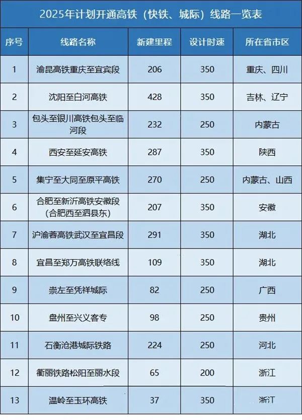結(jié)合各在建高鐵(含快速鐵路、城際鐵路)進度情況和計劃通車時間,2023至2025年各年度預(yù)計通車高鐵項目如下: