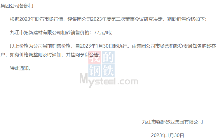 一、九江鄱陽(yáng)湖砂大幅下調(diào)