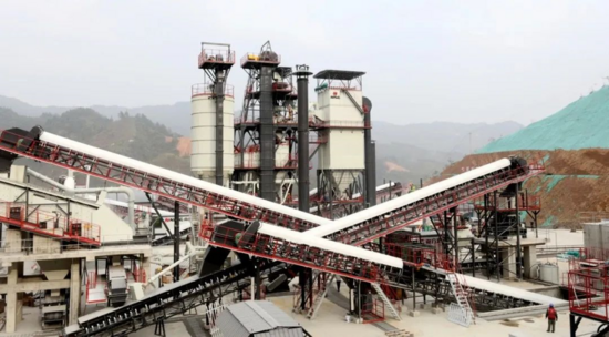 依據(jù)現(xiàn)場(chǎng)地形地貌,現(xiàn)場(chǎng)采取了臺(tái)階形的設(shè)備布置及一站式成品生產(chǎn)機(jī)械組合,搭配下端設(shè)置的智能混凝土拌合站,實(shí)現(xiàn)砂石破碎、篩分、整形、制砂、攪拌一站式成品服務(wù),有效減少了車輛運(yùn)輸?shù)倪\(yùn)距和倒運(yùn)次數(shù),節(jié)約了運(yùn)輸車輛需求及燃油消耗,降低了土石方開挖工程量。