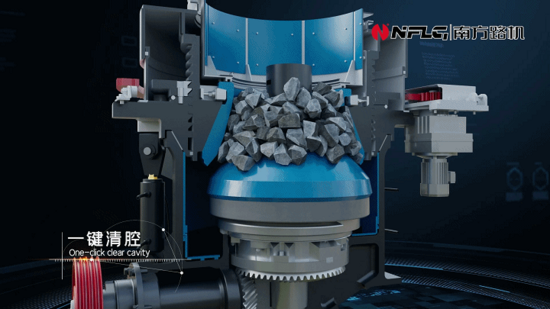 破碎生產(chǎn)線的核心VC多缸液壓圓錐破碎機(jī)的“一鍵清腔”按鈕,可在幾分鐘內(nèi)清空破碎腔;“一鍵標(biāo)定磨損”,自動(dòng)完成