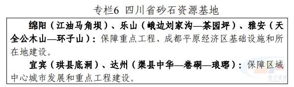 明確區(qū)域建筑用砂石資源保障方向。綿陽、樂山、雅安等市, 通過區(qū)域協(xié)調(diào),為川藏鐵路、成渝中線等重點工程、成都平原地 區(qū)基礎(chǔ)設(shè)施和城市建設(shè)提供資源保障;川東、川南和攀西地區(qū)砂 石資源供給圍繞區(qū)域中心城市發(fā)展和保障鐵路、公路、機(jī)場等重 點項目建設(shè)布局,涼山、巴中等交通不便地區(qū)為保障民生工程建設(shè)可適量設(shè)置建筑用砂石開采規(guī)劃區(qū)塊,其他地區(qū)原則上只設(shè)置 建筑用砂石集中開采區(qū);川西北生態(tài)經(jīng)濟(jì)區(qū)嚴(yán)格落實長江黃河上 游生態(tài)屏障和國家生態(tài)安全要求,減少露天建筑用砂石開采對高 原生態(tài)環(huán)境影響,鼓勵甘孜、阿壩在重大基礎(chǔ)設(shè)施建設(shè)沿線布局 建筑用砂石資源調(diào)入儲備區(qū),做好砂石資源儲備工作,保障重大 基礎(chǔ)設(shè)施建設(shè)需求。鼓勵和支持綜合利用廢石、礦碴和