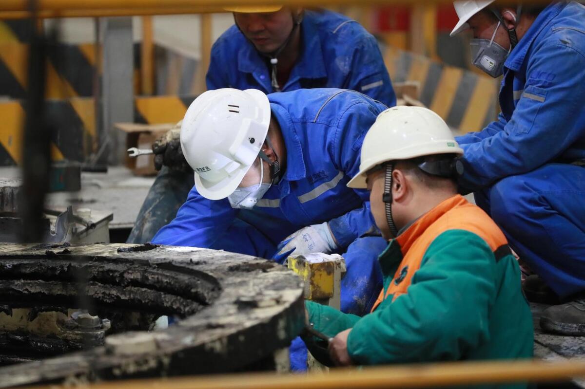 大皇山礦細(xì)碎車間開展年度大檢修。馬晶晶/攝。
