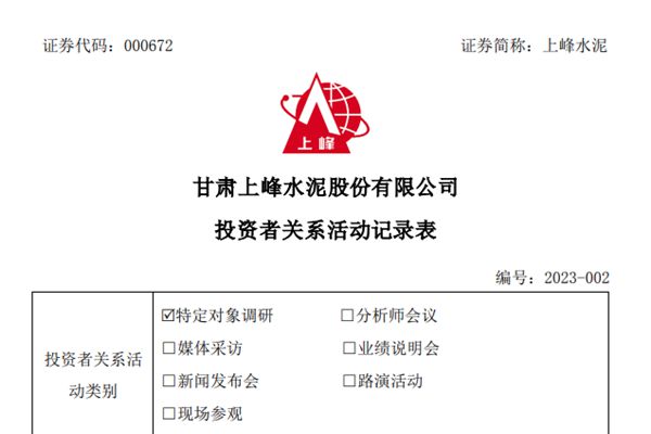 2023年2月27日、2023年3月2日、3日,上峰水泥接受財通證券等機(jī)構(gòu)調(diào)研,公司董秘瞿輝、證券事務(wù)代表楊旭參與接待,并回答了調(diào)研機(jī)構(gòu)提出的問題。據(jù)悉,上峰水泥曾在2022年三季報中披露,