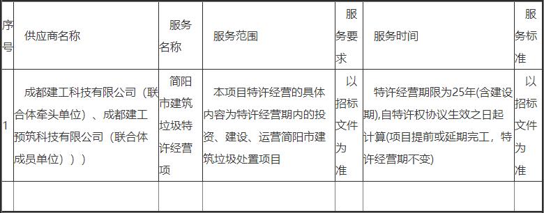 簡(jiǎn)陽(yáng)市綜合行政執(zhí)法局簡(jiǎn)陽(yáng)市建筑垃圾特許經(jīng)營(yíng)項(xiàng)目公開(kāi)招標(biāo)中標(biāo)公告