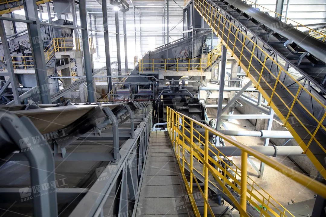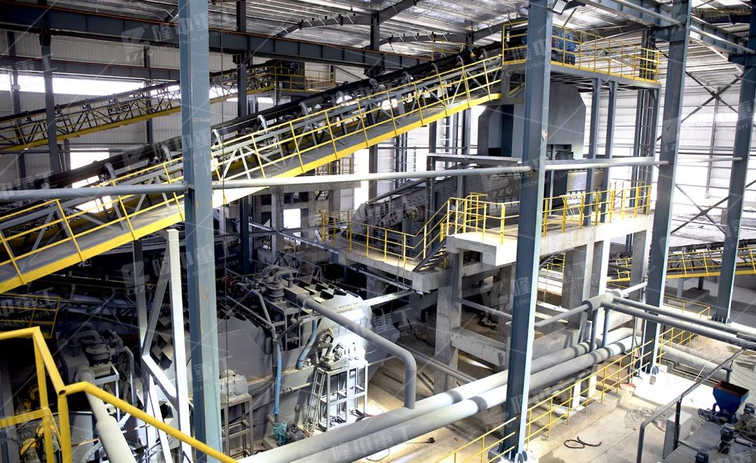 該生產(chǎn)線原料為鵝卵石、花崗巖、山砂料,從破碎制砂、篩分水洗、污水零排放、儲存,各環(huán)節(jié)均采用全封閉式結(jié)構(gòu),收塵管道布置于系統(tǒng)各處揚塵點,避免粉塵外溢,實現(xiàn)環(huán)保生產(chǎn)。