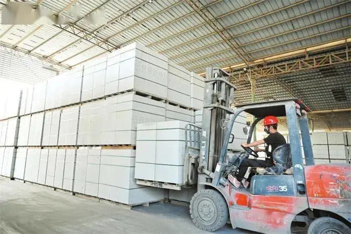 海南廣勝新型建材有限公司工作人員在成品庫(kù)運(yùn)輸加氣磚。海口日?qǐng)?bào)記者石中華 攝