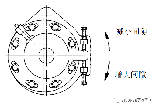 由于水平軸箱是偏心安裝的,所以需要通過轉(zhuǎn)動水平軸箱的位置來調(diào)整齒輪間隙。