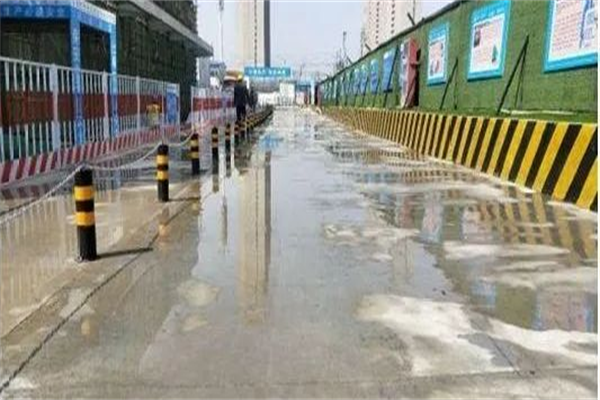 施工現(xiàn)場出入口、場內(nèi)主要道路、材料堆放場地和加工場所采用混凝土等材料硬化,要求現(xiàn)場排水暢通,無明顯積水。