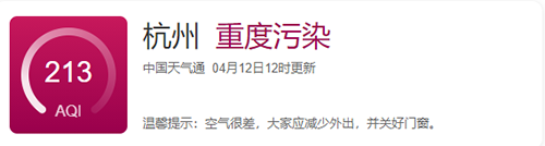 而筆者所在的地區(qū),已經(jīng)重度污染,能見度范圍低。