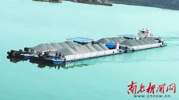 每月運輸量可達8萬噸,嘉陵江南充至北碚段水路砂石貨運忙