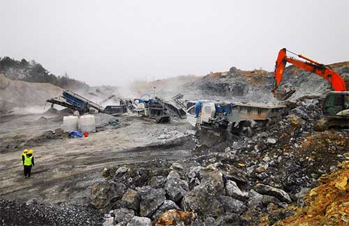 高速公路自產(chǎn)骨料,用路基開挖道路項(xiàng)目本身產(chǎn)生的建設(shè)廢料加工骨料。道路上產(chǎn)生的石料各種可能都有,有石灰石這樣的軟巖,也可能有花崗巖之類的硬巖,為了最大化生產(chǎn)配置,滿足加工要求,因此機(jī)隊(duì)中既有克磊鏝反擊破,又有顎破加圓錐的這種配置,這樣就可以滿足高速項(xiàng)目就地取材多種原材料石料類型的加工需要。