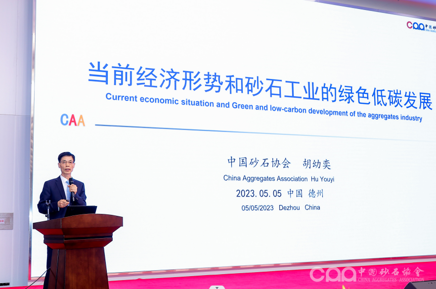 中國砂石協(xié)會會長胡幼奕作題為《當前經濟形勢和砂石工業(yè)的綠色低碳發(fā)展》的主旨報告。