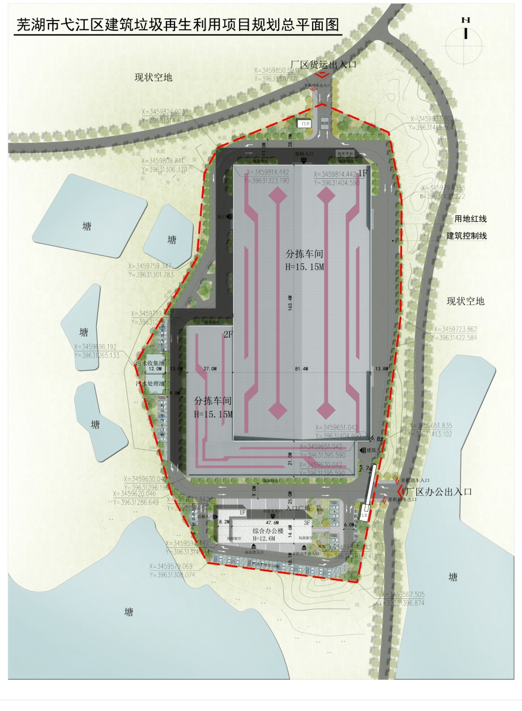 弋江區(qū)建筑垃圾再利用項目位于九華南路西側(cè)、高鐵南站東側(cè),占地面積約50畝,根據(jù)設(shè)計圖顯示,項目包括分揀車間、綜合辦公樓,總用地面積33160平方米新建廠房及辦公樓,總建筑面積23846.23平方米,計容總建筑面積50121.35平方米。
