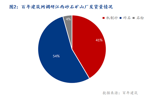 百年建筑調(diào)研涉及南昌、九江、景德鎮(zhèn)、宜春、撫州、贛州等市場(chǎng),了解到本周砂石發(fā)貨量碎石占54%,機(jī)制砂占41%,石粉占4%。