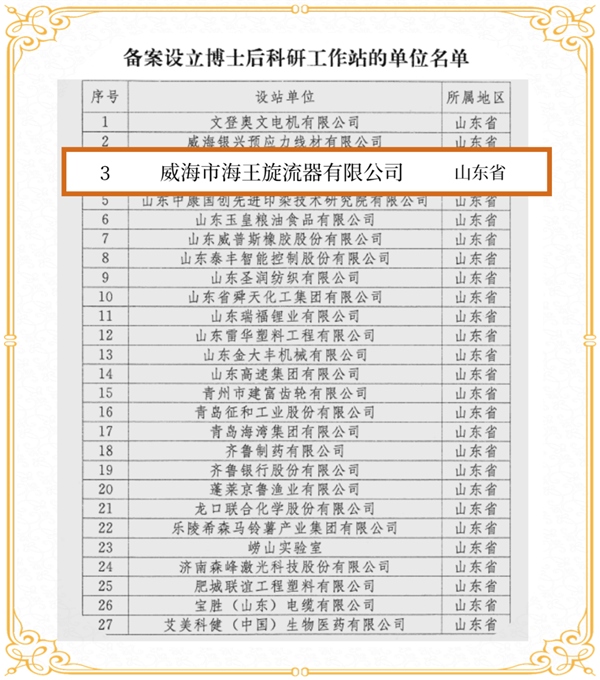 近日,國(guó)家人力資源社會(huì)保障部、全國(guó)博士后管理委員會(huì)辦公室發(fā)布《關(guān)于開(kāi)展2022年博士后科研工作站新設(shè)站工作的通知》,威海市海王旋流器有限公司榜上有名,成功獲批為國(guó)家級(jí)博士后科研工作站,標(biāo)志海王公司在高層次人才聯(lián)合培養(yǎng)、科研平臺(tái)建設(shè)上取得重大突破。