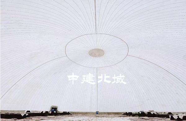 此外,百米直徑超大圓形氣膜料棚還自帶微霧抑塵系統(tǒng)。該系統(tǒng)具有“微米級(jí)噴霧+高效粉塵捕捉劑”的特性,是中建北域團(tuán)隊(duì)苦心鉆研的專利成果。在實(shí)際使用中,該系統(tǒng)能夠讓棚內(nèi)降塵率達(dá)到95%,物料水分增加不到0.5%。在粉塵問(wèn)題的治理上,該系統(tǒng)實(shí)現(xiàn)了低成本、高效率、有效性,成功為 “普通料棚”到“綠色料棚”的轉(zhuǎn)型升級(jí)提供了技術(shù)保障和支撐,也讓中建北域在科技化、智能化的環(huán)保氣膜料棚的建設(shè)市場(chǎng)中具備了良好的競(jìng)爭(zhēng)性和代表性。