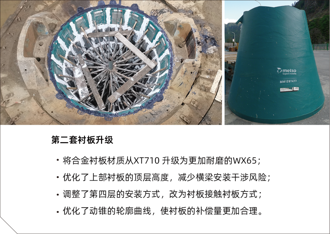 腔型優(yōu)化實現(xiàn)襯板壽命倍增,提高開機率與能效2019年3月,普朗銅礦在與美卓工程師技術交流過程中得知,美卓擁有全面的腔型優(yōu)化服務與開發(fā)能力,以及先進的磨耗件生產(chǎn)專有技術,并已在國內(nèi)、外諸多第三方旋回破碎機升級改造項目中取得成功。隨后,雙方針對PXF6089旋回破碎機的腔型及襯板材質優(yōu)化展開合作。