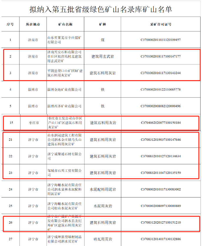 19家砂石礦山擬入選 !山東發(fā)布第五批省級(jí)綠色礦山名錄庫(kù)礦山名單