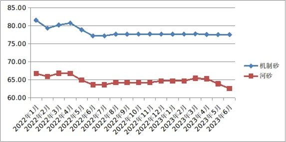 近日,據(jù)了解,甘肅省發(fā)布6月份砂石、水泥價格分析報告,機制砂、水泥價格持平,河砂價格下降2.13%,其中機制砂(細砂)每噸77.56元,河砂(細砂)每噸62.55元。6月份砂子環(huán)比價格下降,水泥價格平穩(wěn);同比,水泥、砂子均有所下降。