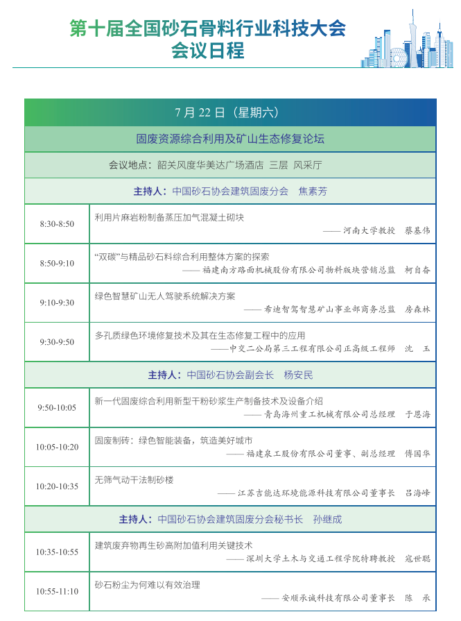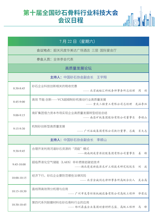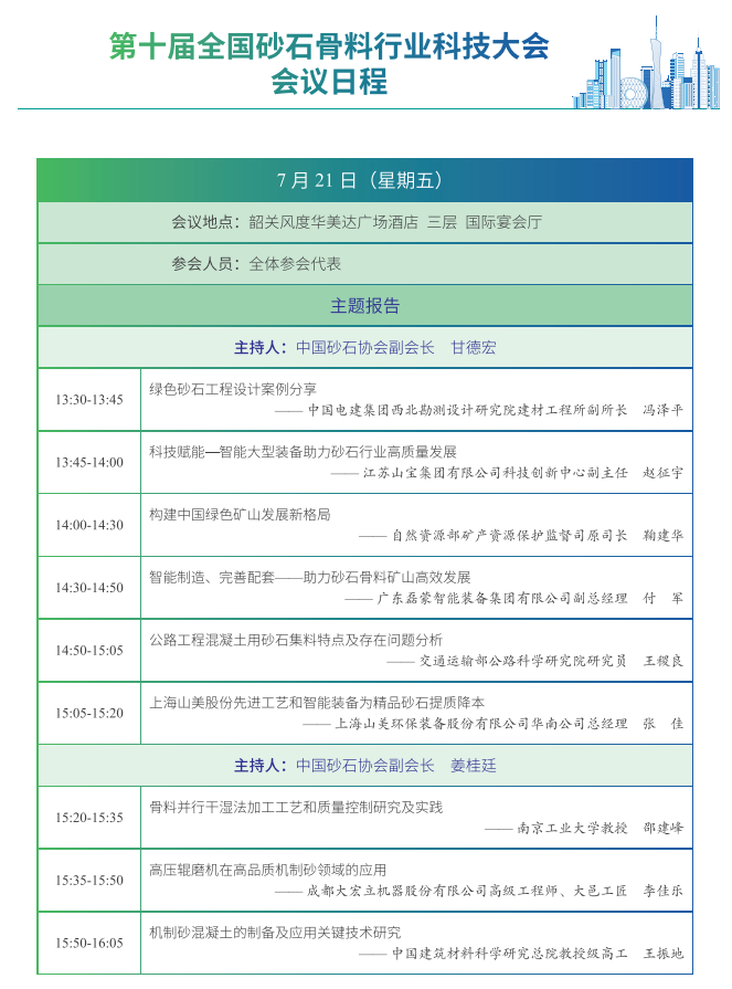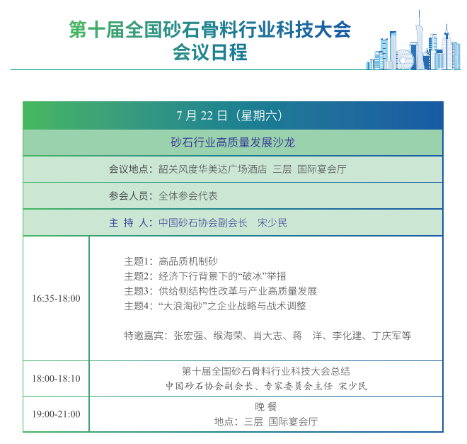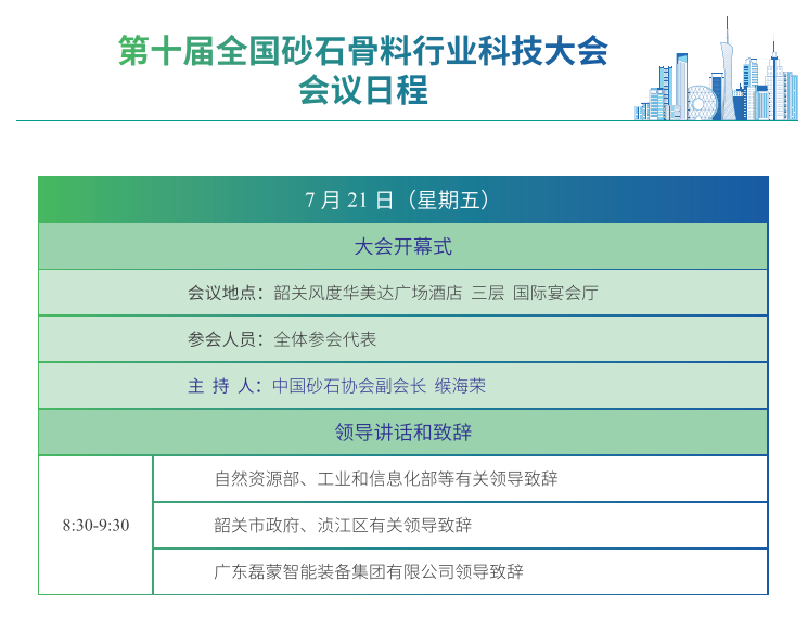 明日報到!第十屆全國砂石骨料行業(yè)科技大會即將啟幕!