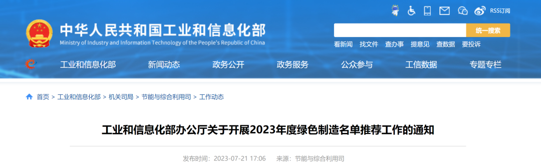 2023年7月21日,工業(yè)和信息化部辦公廳發(fā)布關(guān)于開展2023年度綠色制造名單推薦工作的通知(工信廳節(jié)函〔2023〕202號),啟動2023年度綠色制造名單推薦工作,包括綠色工廠、綠色工業(yè)園區(qū)、綠色供應(yīng)鏈管理企業(yè)。
