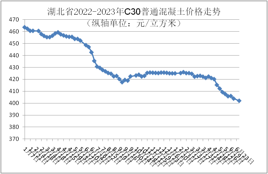監(jiān)測數(shù)據(jù)顯示:6月份,強度等級C30普通混凝土全省均價為404.52元/立方米,環(huán)比下跌1.62%,同比下跌9.33%。