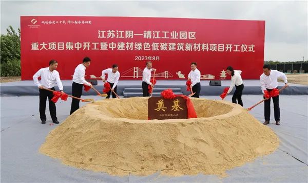 2023年8月14日上午,江蘇江陰-靖江工業(yè)園區(qū)重大項(xiàng)目集中開(kāi)工暨中建材綠色低碳建筑新材料項(xiàng)目開(kāi)工儀式在華東材料江蘇永益華元物流有限公司項(xiàng)目建設(shè)現(xiàn)場(chǎng)舉行。