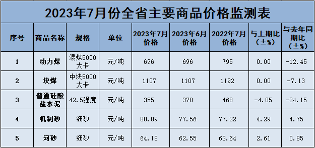近日,據(jù)了解,甘肅省發(fā)布7月份砂石、水泥價(jià)格分析報(bào)告,7月份砂子價(jià)格環(huán)比上漲,煤炭?jī)r(jià)格平穩(wěn);同比,煤炭、水泥下降,砂石上漲。