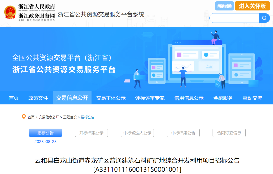云和縣白龍山街道赤龍礦區普通建筑石料礦礦地綜合開發利用項目工程招標公告