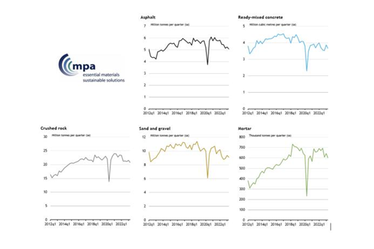 礦產(chǎn)品協(xié)會(huì) (MPA) 的最新季度調(diào)查(涵蓋英國骨料、瀝青、預(yù)拌混凝土和砂漿)顯示2023年第二季度實(shí)際銷量下降。