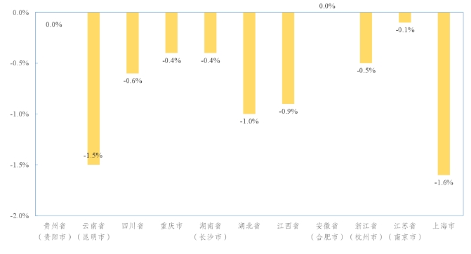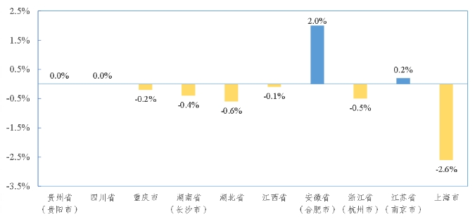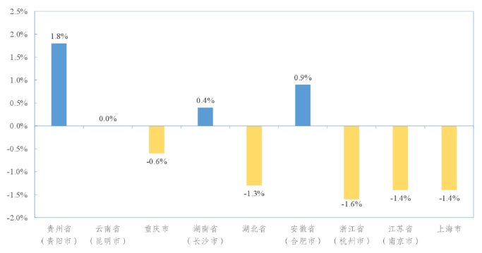 8月,混凝土價格或止跌回升或跌幅收窄。其中,貴州省(貴陽市)、湖南省(長沙市)、安徽省(合肥市)混凝土價格均止跌回升,云南省(昆明市)價格企穩,重慶市、湖北省、浙江省(杭州市)、江蘇省(南京市)、上海市跌幅分別收窄0.1、0.3、4.9、1.3、0.6個百分點。