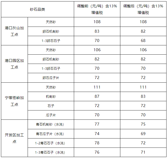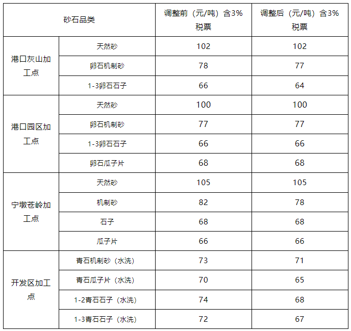 近日,寧國國控下屬子公司寧國城市建設(shè)投資有限公司寧墩分公司、寧國市中津建材貿(mào)易有限公司發(fā)布砂石價格最新調(diào)整通知。