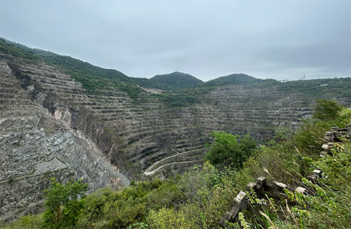 “右手邊這些連綿起伏的山,我們稱(chēng)之為‘人造山’。顧名思義,這些山都是由廢石堆積而成的。石頭灰塵的堆積的地方,根本沒(méi)有土,植物也就無(wú)從生長(zhǎng)。”講解員介紹道。