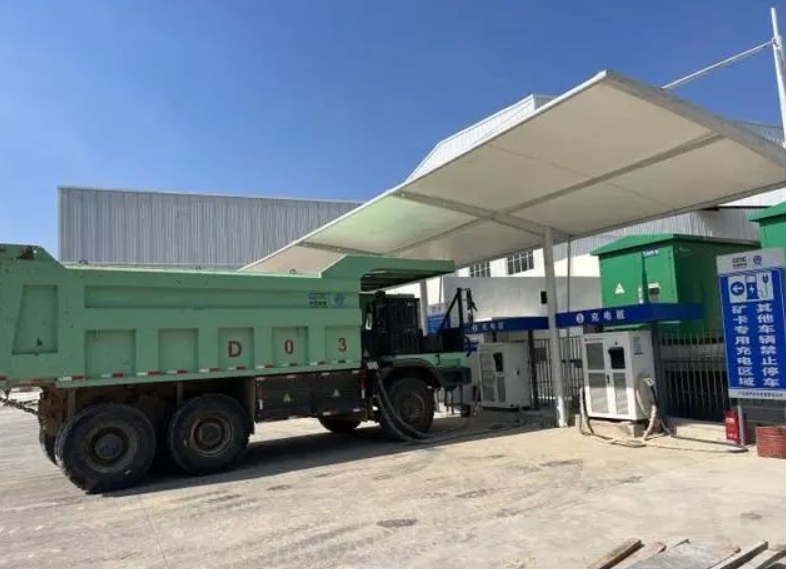 砂石礦山項目引進了電動礦卡,在載重、碳排放等方面相比于傳統(tǒng)大型自卸車具備顯著優(yōu)勢,真正意義上可實現(xiàn)“零碳”排放。