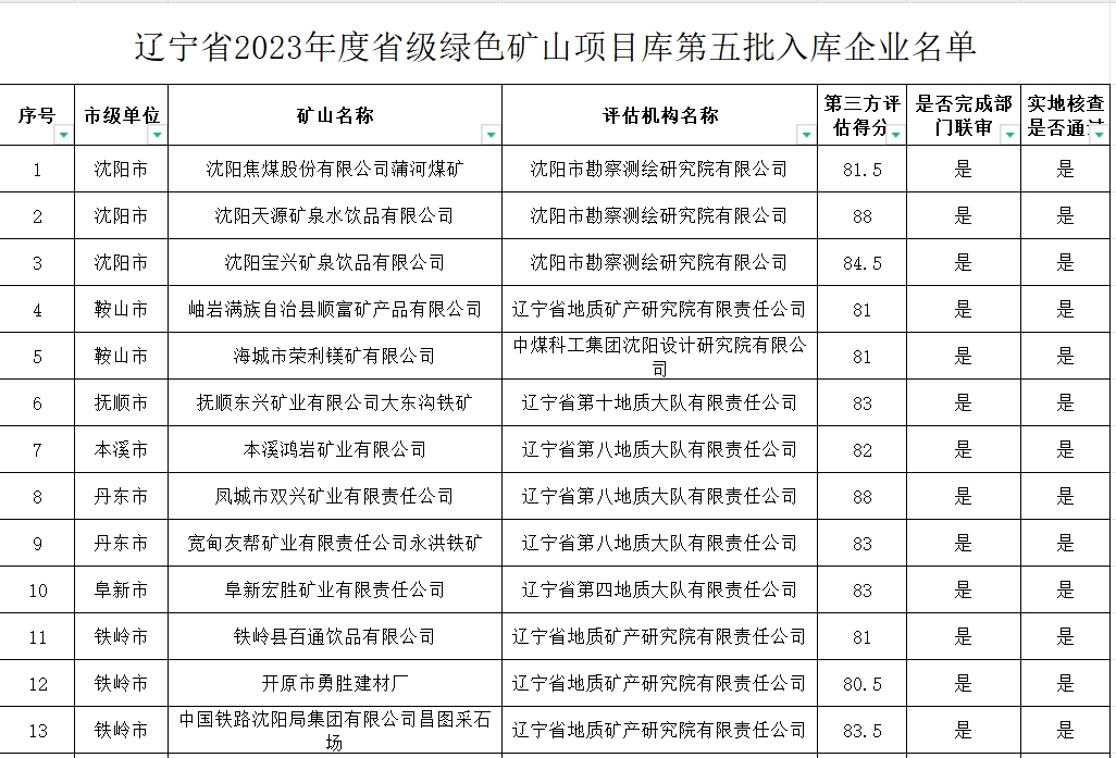 25家入庫,遼寧省2023年度省級綠色礦山項目庫第五批入庫企業(yè)名單公告